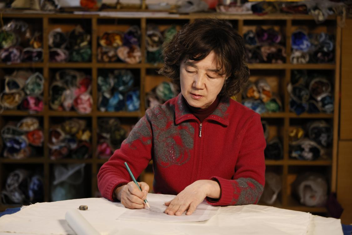 圖:國家級非物質(zhì)文化遺產(chǎn)項目劇裝戲具制作技藝代表性傳承人孫穎